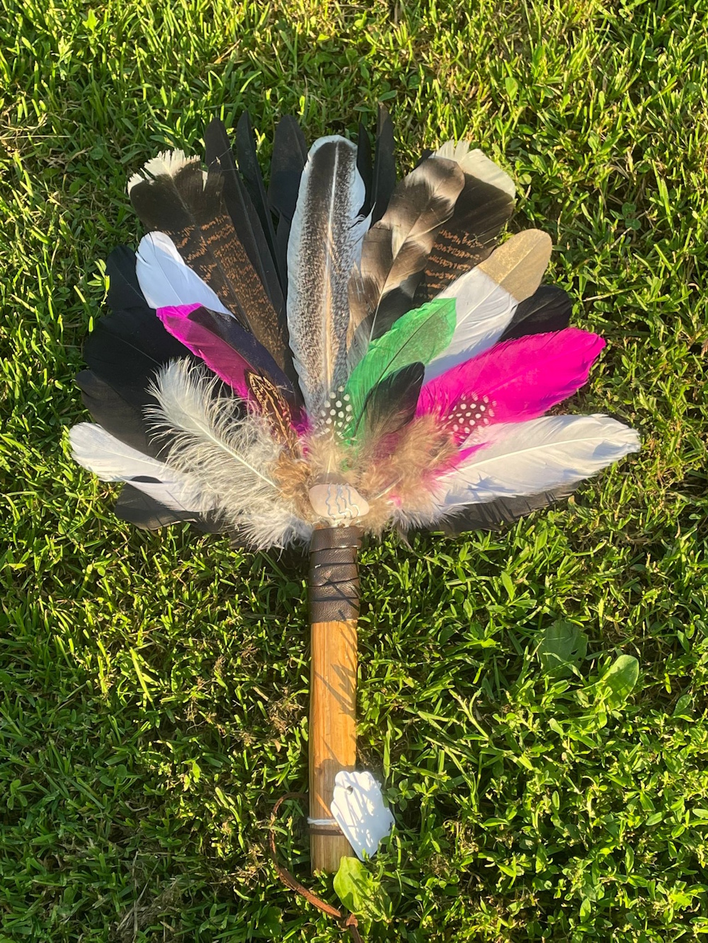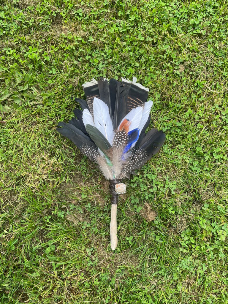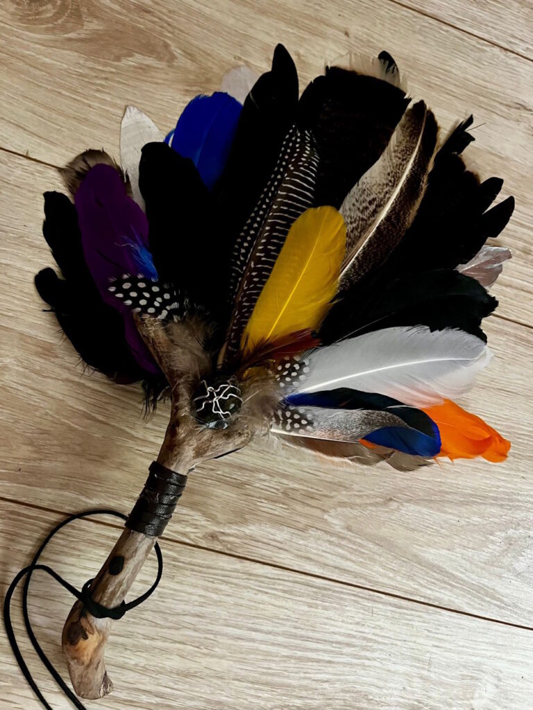during that session took hold of my hand and told me I am capable and worthy. Once home I started to try out my “artistic“ side but since I saw a beautiful feather fan smudge at the training , belonging to the amazing Vivienne, and know ing it came from Peru, and was allowed to hold it and felt the incredible energy it holds, I started to search for one too. Sadly they are very hard to come by, and they are very pricey. So , as Vivienne told me , why not making my own?