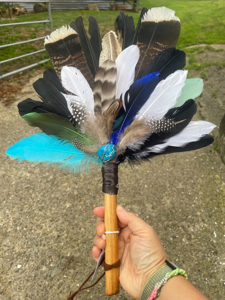 Raika is a cacao facilitator, kundalini energy facilitator, pet bereavement counsellor and artist. She began creating feather fan smudges this year. Read her story below: