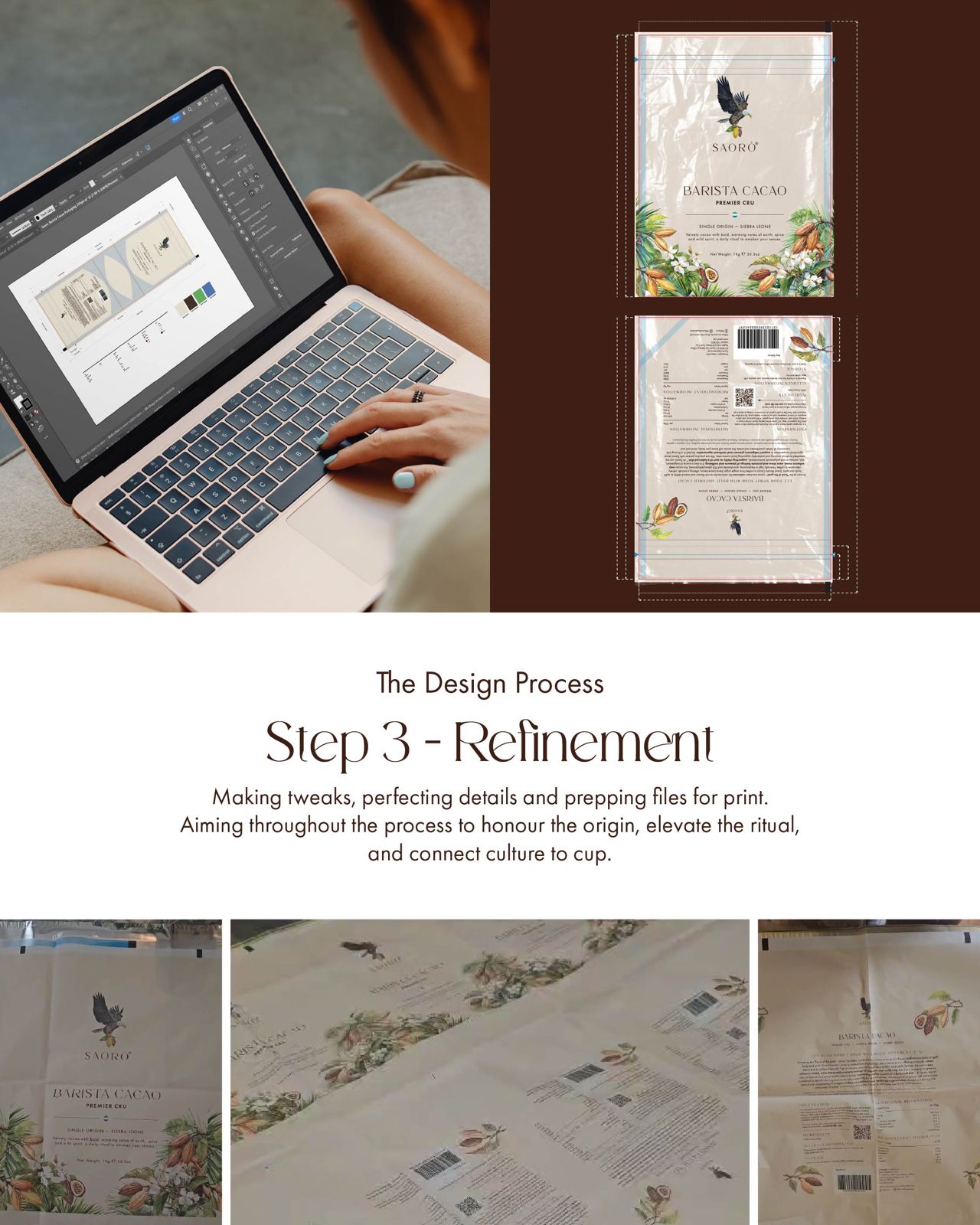 “Hi, I’m Saoirse, I am a designer from Galway and am so proud to have designed the packaging and marketing materials of the Premier Cru Barista Cacao for the wonderful Saoró team. I studied Industrial Design in Dublin before moving to London, where I joined Cath Kidston designing homeware collections.