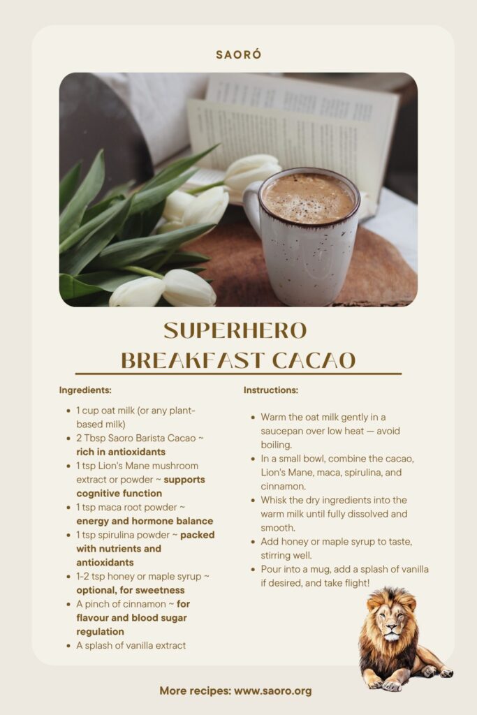 - 2 Tbsp Saoro Barista Cacao ~ rich in antioxidants