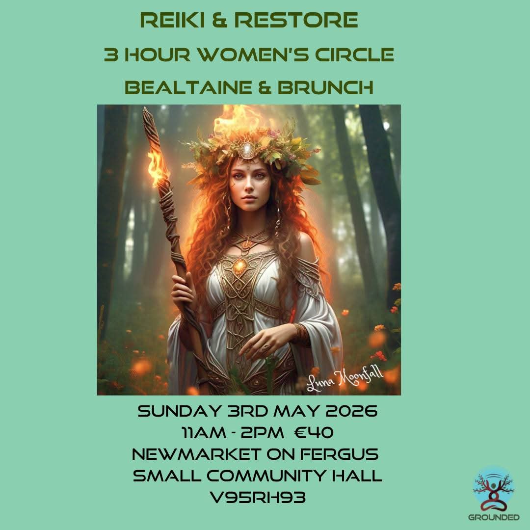 I’m delighted to announce my next Reiki and Restore Women’s circle to celebrate Bealtaine on Sunday 3rd May 2026 from 11 am to 2 pm in the Newmarket on Fergus Community hall.