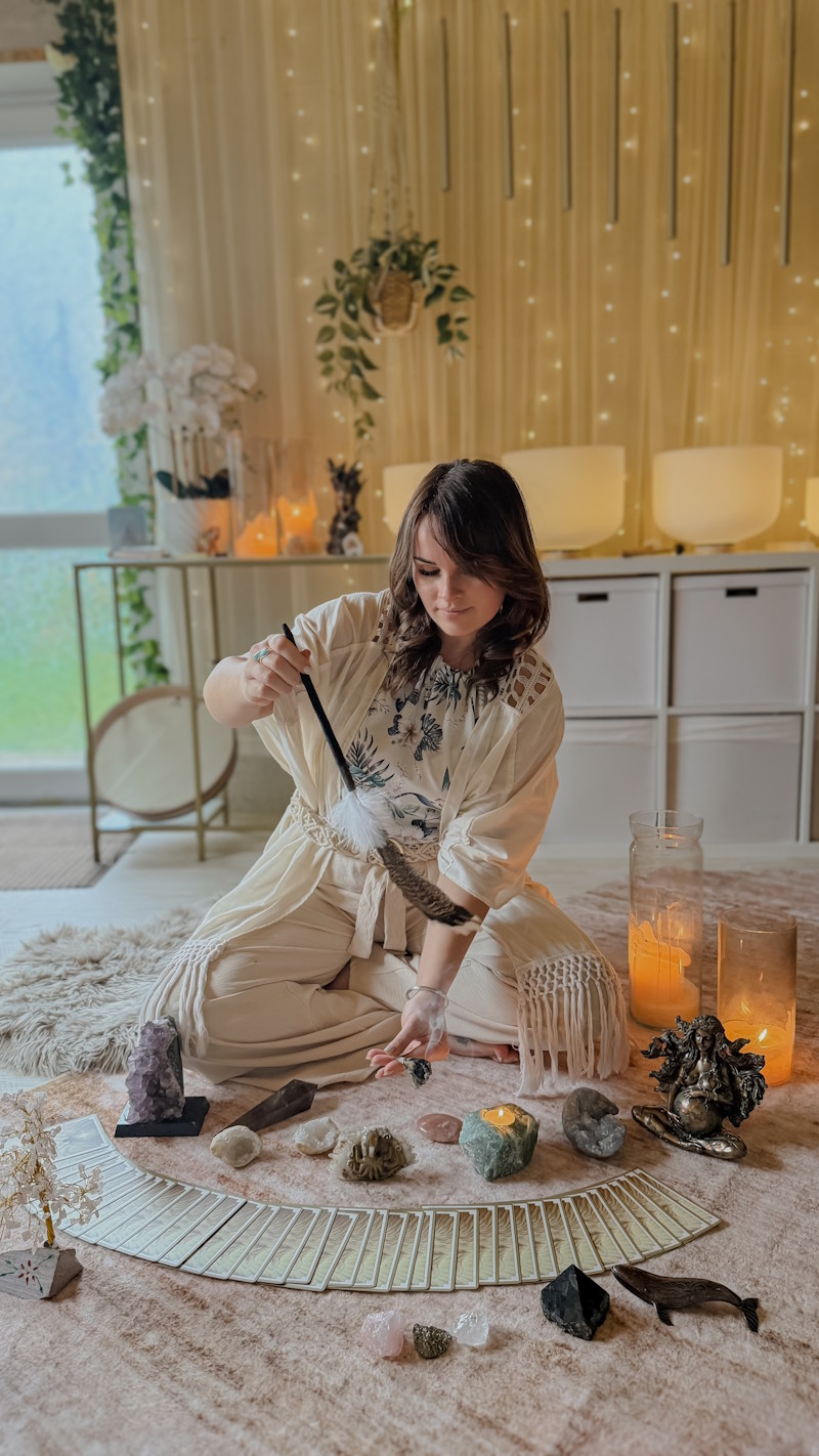 I begin with ceremonial cacao, inviting the heart to soften and open. From this space, I guide sound healing journeys combined with Reiki and intuitive energy work. During sessions, I channel light language and transmit light codes into your energetic and physical body, supporting deep cellular remembrance, activation, and integration.